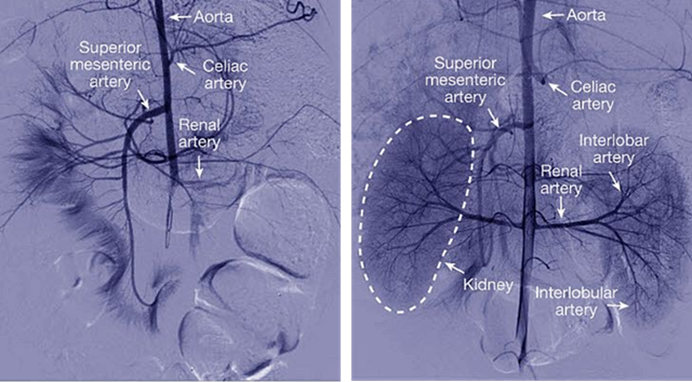 图3 ECMO(左图)和OrganEx(右图)灌注3小时后的猪肾脏。(图源:[2])