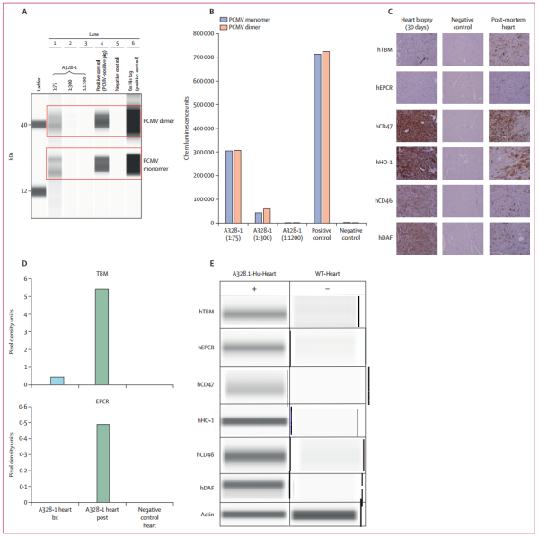 异种移植后供体PCMV和转基因表达状况(图源:The Lancet)