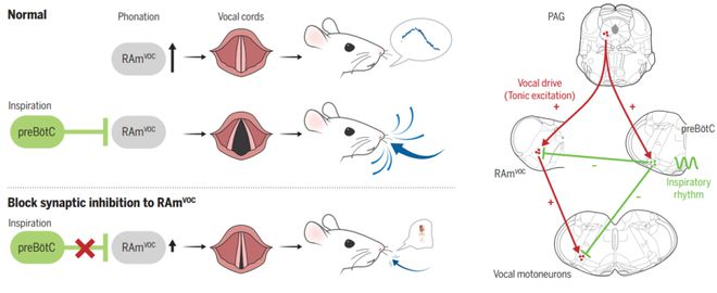 发声和发声-呼吸协调的神经元和回路机制(Credit: Science)