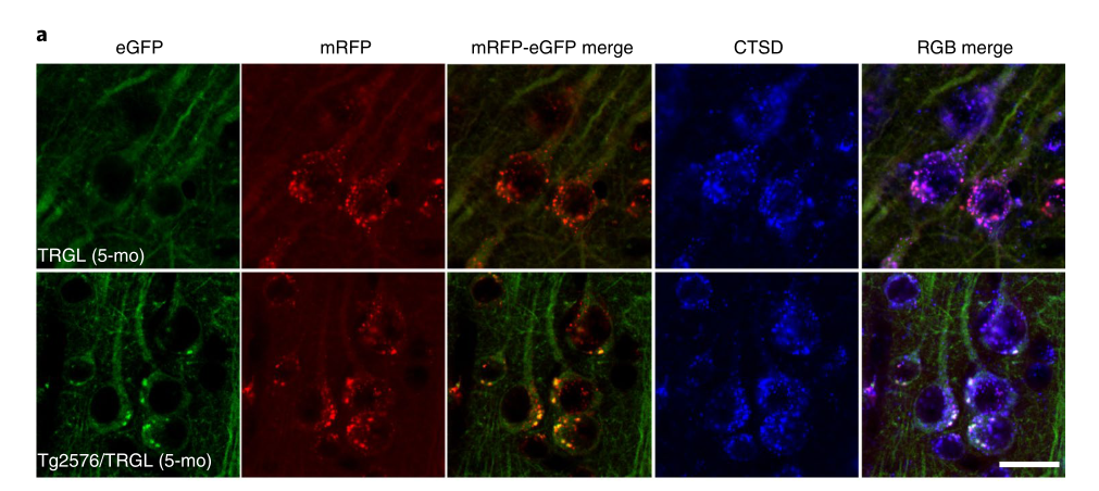 首先他们需要在阿尔兹海默症小鼠中观察到神经细胞的溶酶体出现酸化障碍,并且这一过程是早于细胞死亡以及细胞外淀粉样斑块形成的。