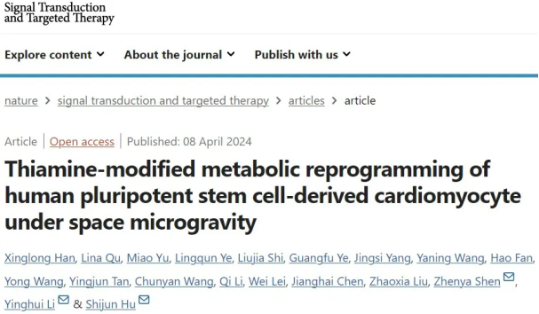 Han X, et al. Thiamine-modified metabolic reprogramming of human pluripotent stem cell-derived cardiomyocyte under space microgravity. Signal Transduct Target Ther. 2024 Apr 8;9(1):86.