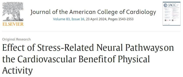 该研究题为“Effect of Stress-Related Neural Pathways on the Cardiovascular Benefit of Physical Activity”,发表在Journal of the American College of Cardiology杂志。