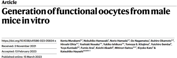 进化论告诉我们,物竞天择,适者生存。不知道大家有没有思考过一个问题,同性性行为不能产生后代,那为什么在自然选择中同性性行为的基因依然能够留存下来呢?以往的研究表明:双性性行为者的基因可能具有生殖优势,而他们的孩子会携带同性遗传基因,这解释了其遗传持续性(为什么同性恋在进化中没有消失?Science子刊:背后原因出乎预料!)。尽管同性基因可以得以遗传,但不论怎么说,同性之间即使是真爱,想要繁衍后代,还是需要通过异性。但是,传统认知也是可以被现代科学颠覆的!这不,在Nature的一篇报道中,自然生殖中的性别限制被解开,科学家在体外将雄性小鼠的诱导多能干细胞(iPSCs)转化为功能性卵细胞,进而通过这些卵细胞产生双父系后代。该研究由Kenta Murakami等人发表,题为Generation of functional oocytes from male mice in vitro。