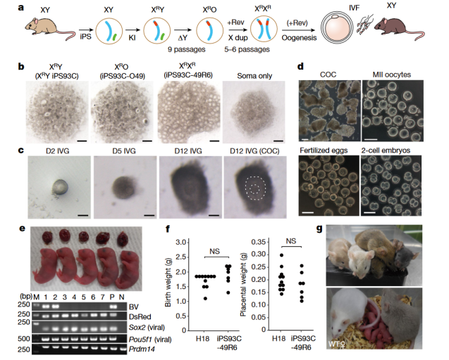 图3:性转化的iPS细胞体外分化的卵母细胞产生的后代