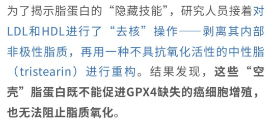 这一发现明确指出:脂蛋白真正的抗铁死亡能力,来自其原生脂质“核心”。