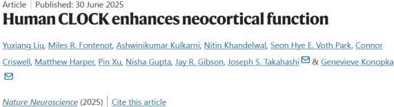 [1]Yuxiang Liu et al, Human CLOCK enhances neocortical function, Nature Neuroscience (2025). DOI: 10.1038/s41593-025-01993-4.