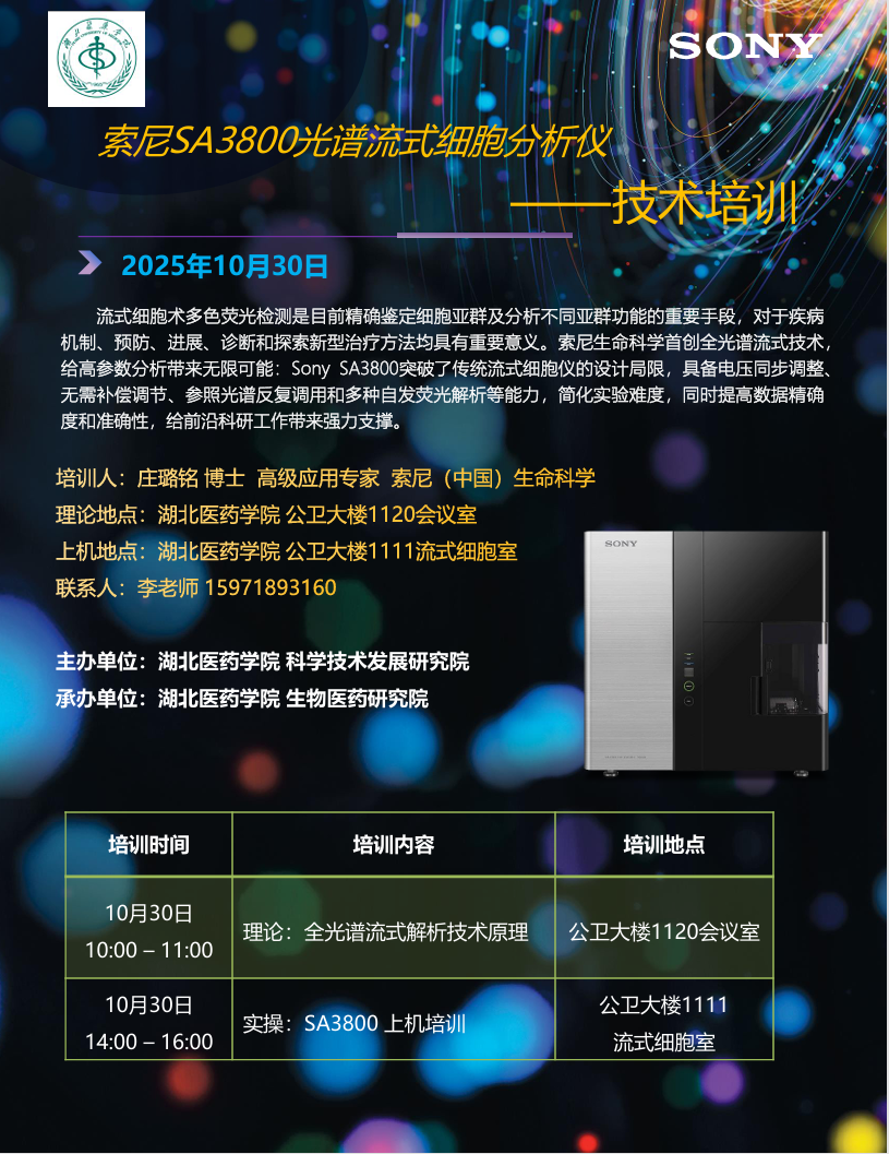 关于生物医药研究院举办索尼SA3800光谱流式细胞分析仪培训的通知