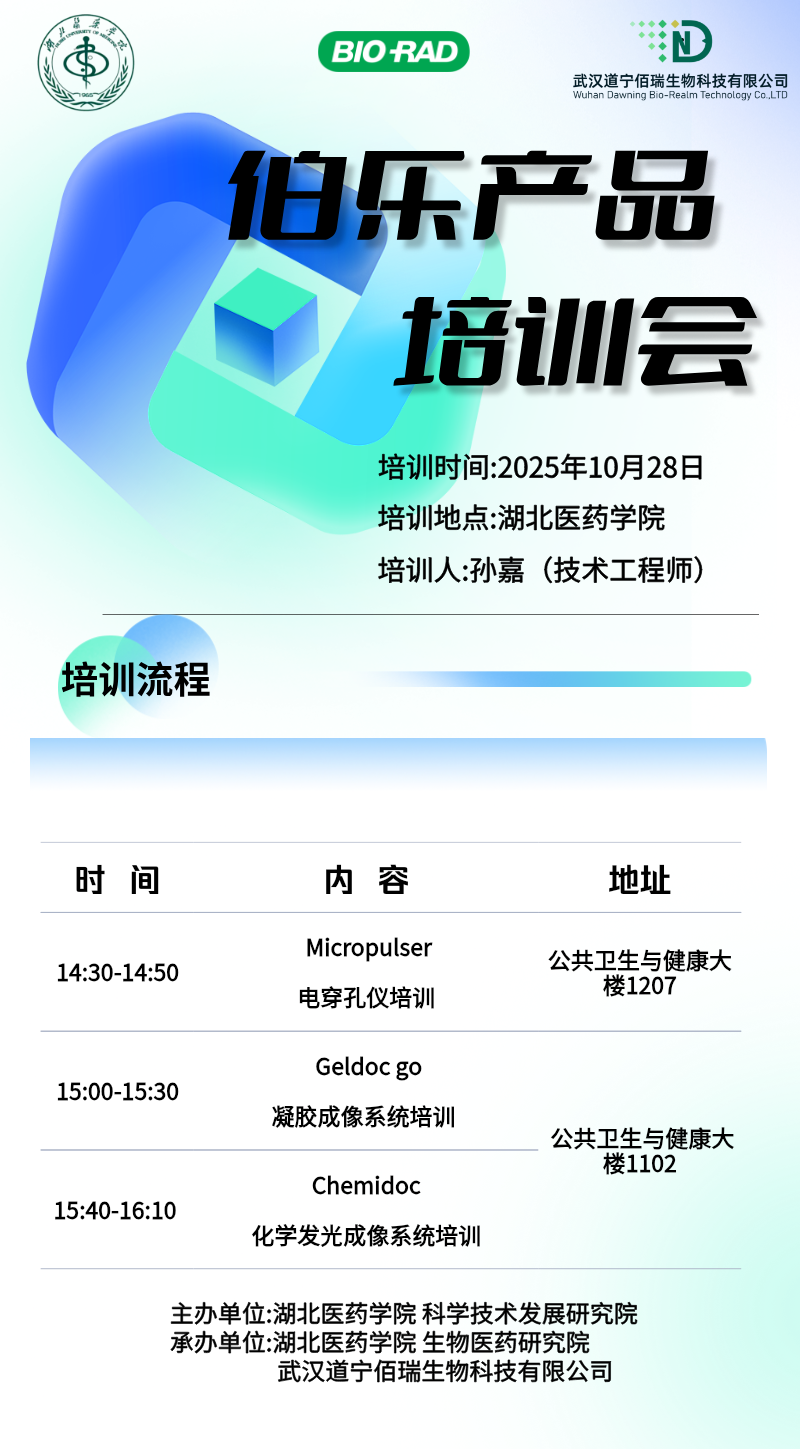 关于湖北医药学院举办伯乐电穿孔、凝胶成像和化学发光仪器培训的通知