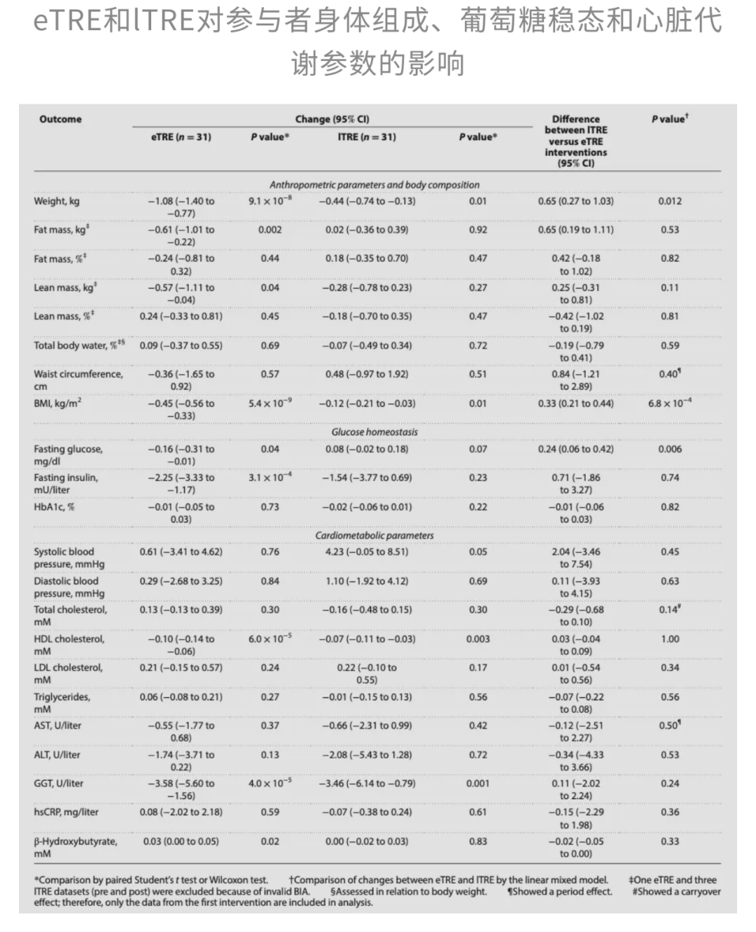 总的来说,这项研究表明,在热量摄入几乎相同的条件下,短期轻断食(比如16+8)并未改善胰岛素敏感性或其他心血管代谢指标。
