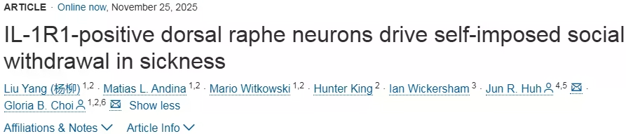 [1]Liu Yang et al, IL-1R-positive dorsal raphe neurons drive self-imposed social withdrawal in sickness, Cell (2025). DOI: 10.1016/j.cell.2025.10.040.